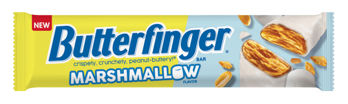 Get ready for a gooey-sweet remix: Butterfinger Marshmallow takes the classic crispety, crunchety, peanut-buttery centre and wraps it in a fluffy, marshmallow-flavored white candy coating. This limited-edition bar brings nostalgic sweet-and-salty fall vibes to Halloween treat bowls, lunch snacks, and baking mix-ins. Kosher Dairy certified and ready to enjoy straight from the wrapper, it delivers the Butterfinger snap you love with a creamy, cloud-like finish. Stock up now - these won't last long!