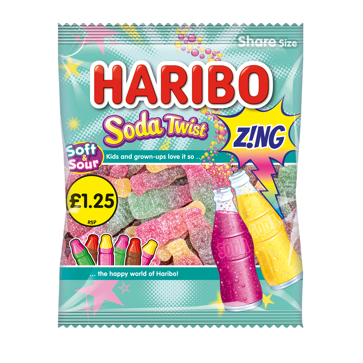 Soda Twist Zing contains a refreshing mix of bottle-shaped soda flavour combinations with a sour kick! The delicious flavours include Rhubarb & Lemonade, Cherry Cola and Strawberry Appleade.
