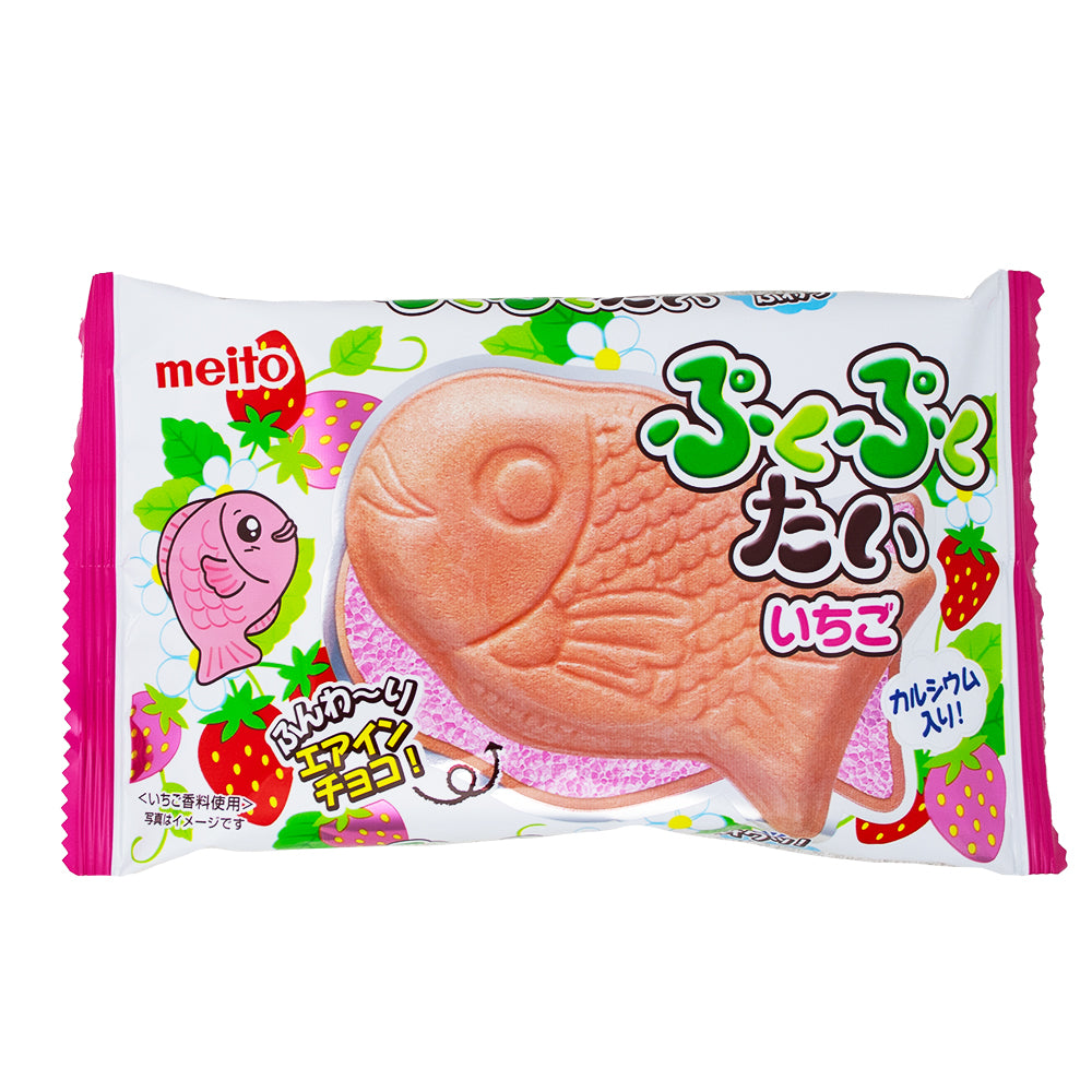 Indulge in the sweet strawberry version of everyone’s favorite Japanese carp fish-shaped treat. Meito Carp Cookies feature thin, crispy wafer layers with delicious strawberry aerated chocolate inside. This unique snack offers a delightful crunch and a smooth, sweet center. Made in Japan, it’s a fun and tasty treat for those who love a touch of novelty in their snacks.