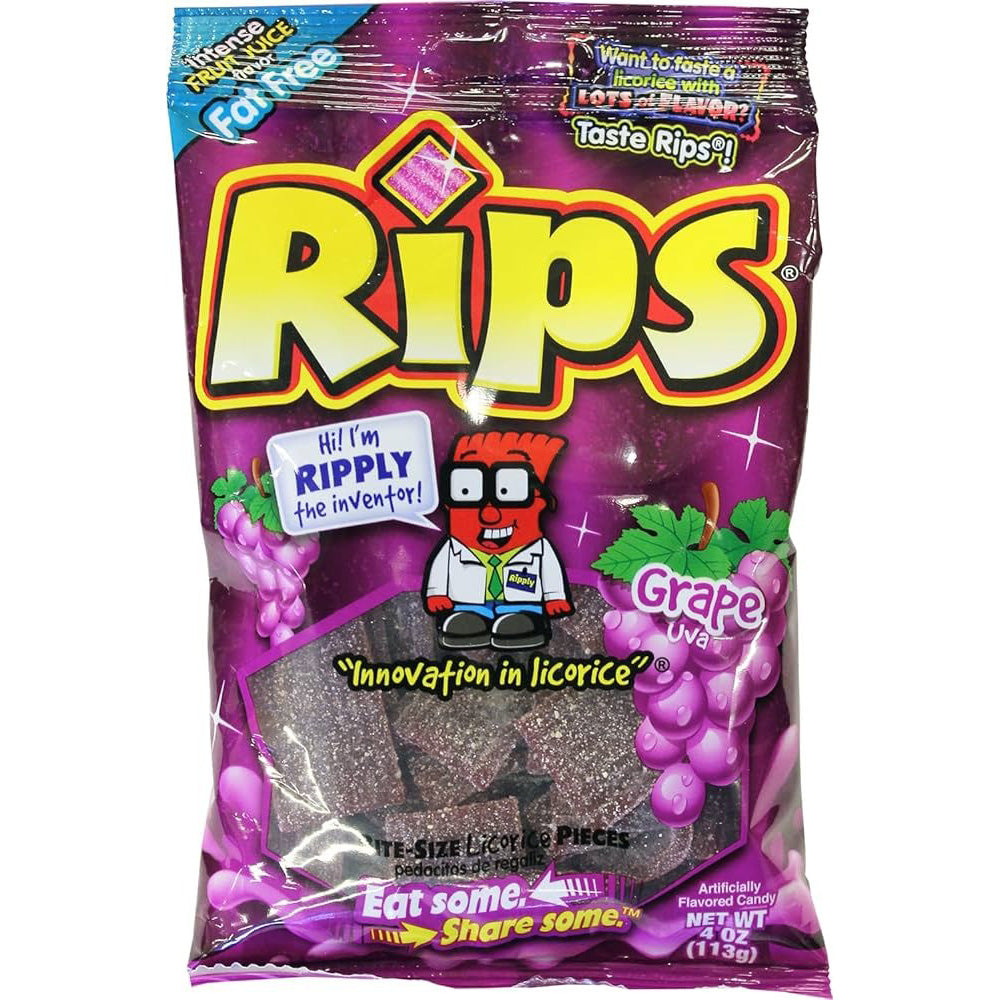 RIPPLY has licorice in the bag with his Rips Bite-Size licorice pieces. Easy to eat and hard to put down, these bite-size pieces pack a powerful flavor combination. Our slightly sour licorice is sugar-sanded for a burst of intense sweet and sour flavor. You can’t eat just one!