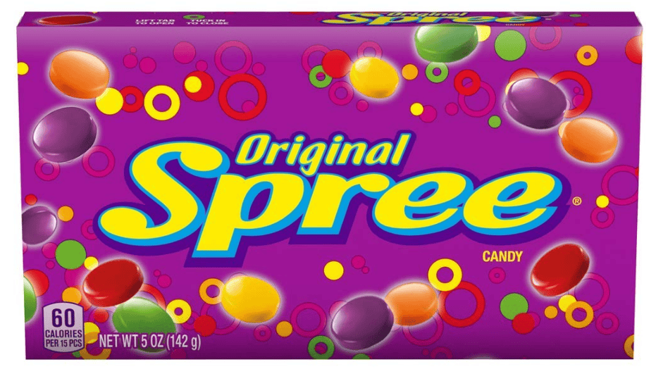 A stimulating taste creation, Spree is sweet-meets-tangy fun that really packs a punch. Original Spree bursts with a sweet, brightly coated outside and a core that's tart, crumbly and incredibly yummy. These theatre boxes are deliciously nostalgic, experience the magic!